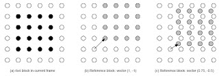 H.261 has suggested similar deblocking filter (optional) which was beneficial to reduce the temporal propagation of coded noise because only integer-pel accuracy motion compensation did not play the role for its reduction. However, MPEG-1, 2 did not use the deblocking filter because of high implementation complexity, on the other hand, the blocking artifacts can be reduced by utilizing the half-pel accuracy MC. The half-pels obtained by bilinear filtering of neighboring integer-pels played the role of the smoothing of the coded noise in the integer-pel domain.